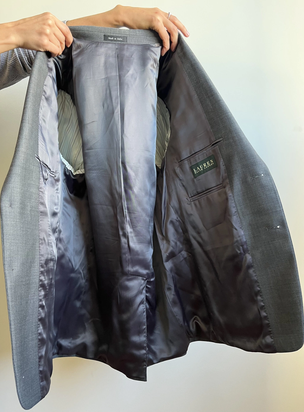 Blazer Ralph Lauren cinza, fabricado na Índia, modelo alongado e bem estruturado. Forrado e em perfeito estado. Veste M (masc) e G (fem), confira as medidas: