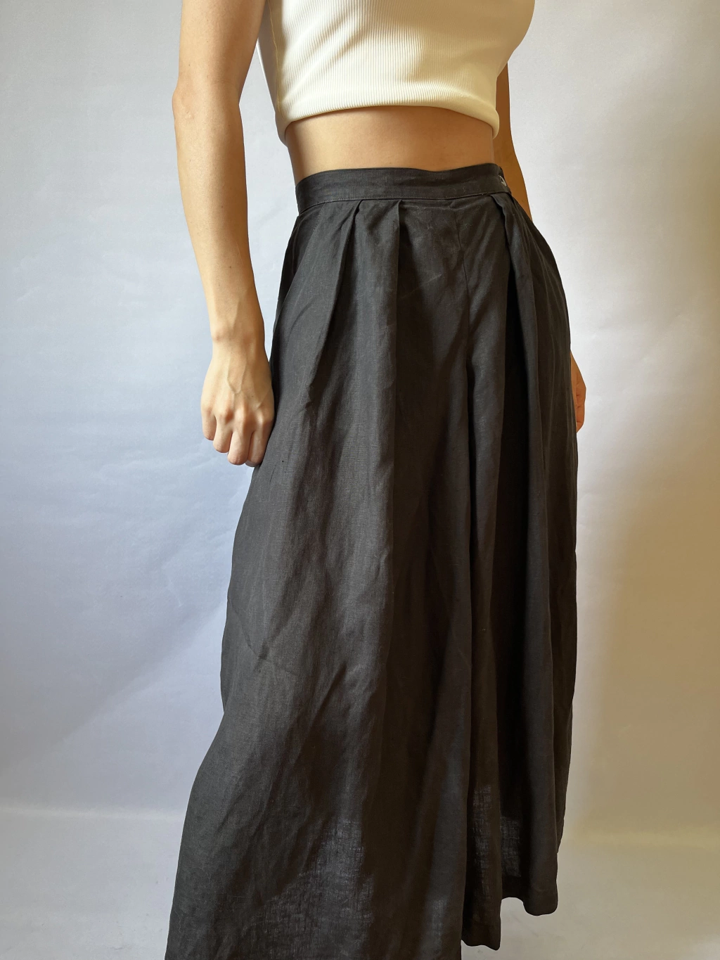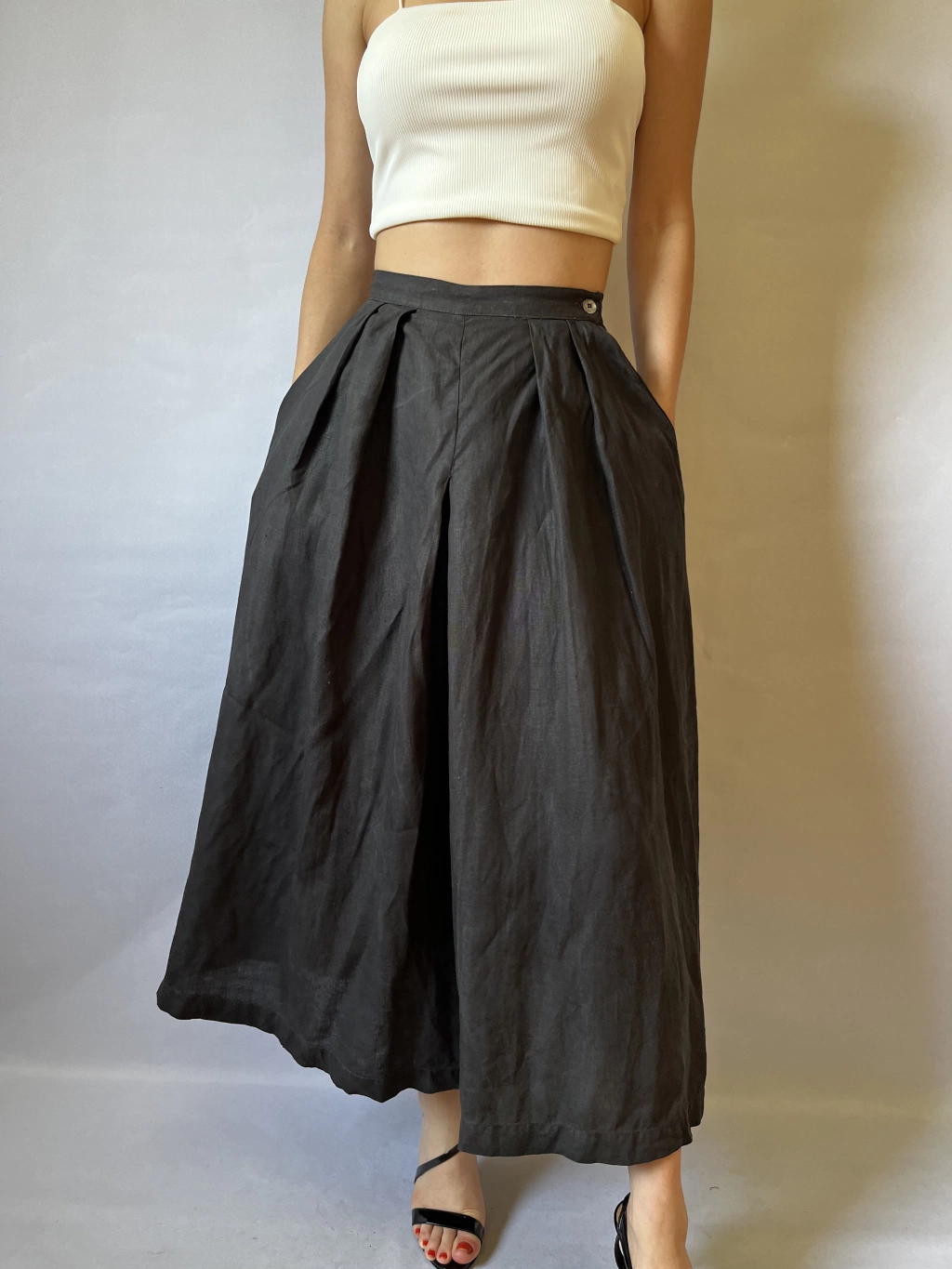 Calça pantacourt em linho puro, vintage CGC, modelo amplo com pregas e cintura alta. Possui bolsos, veste 36.