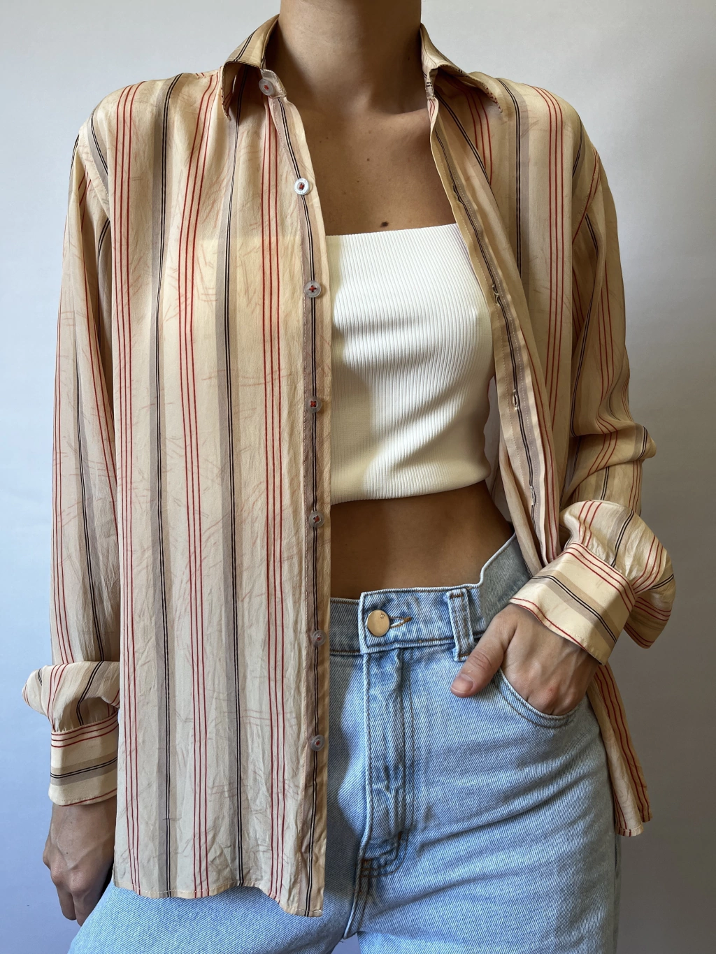 Camisa Lanvin vintage, tecido em seda pura, veste P/M.