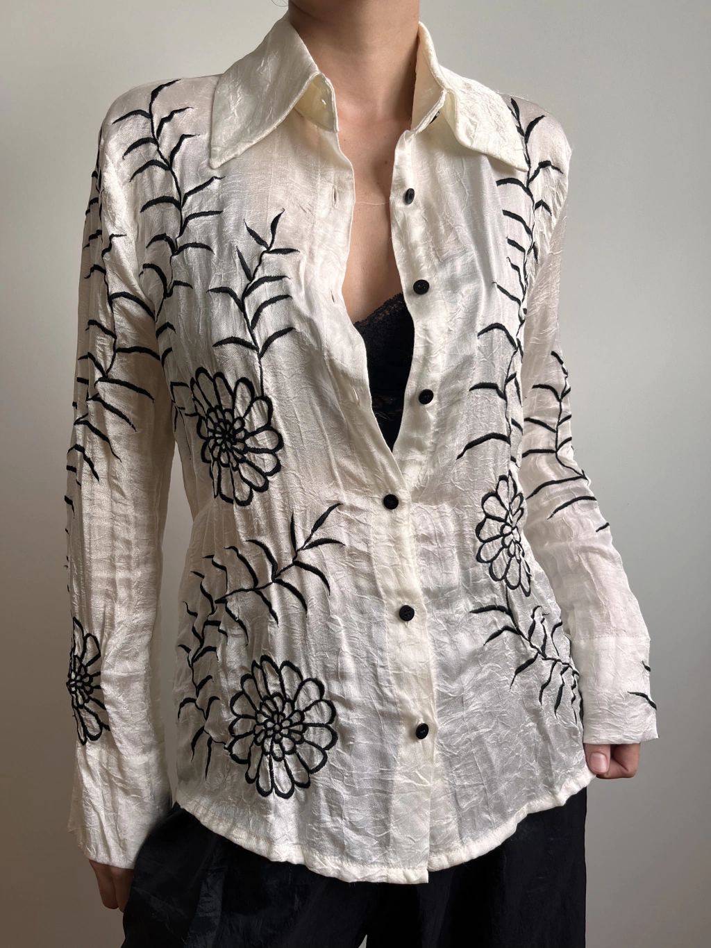 Camisa Absinto vintage, toda bordada, tecido translúcido. Não possui etiqueta de composição. Tamanho 42, confira as medidas:
