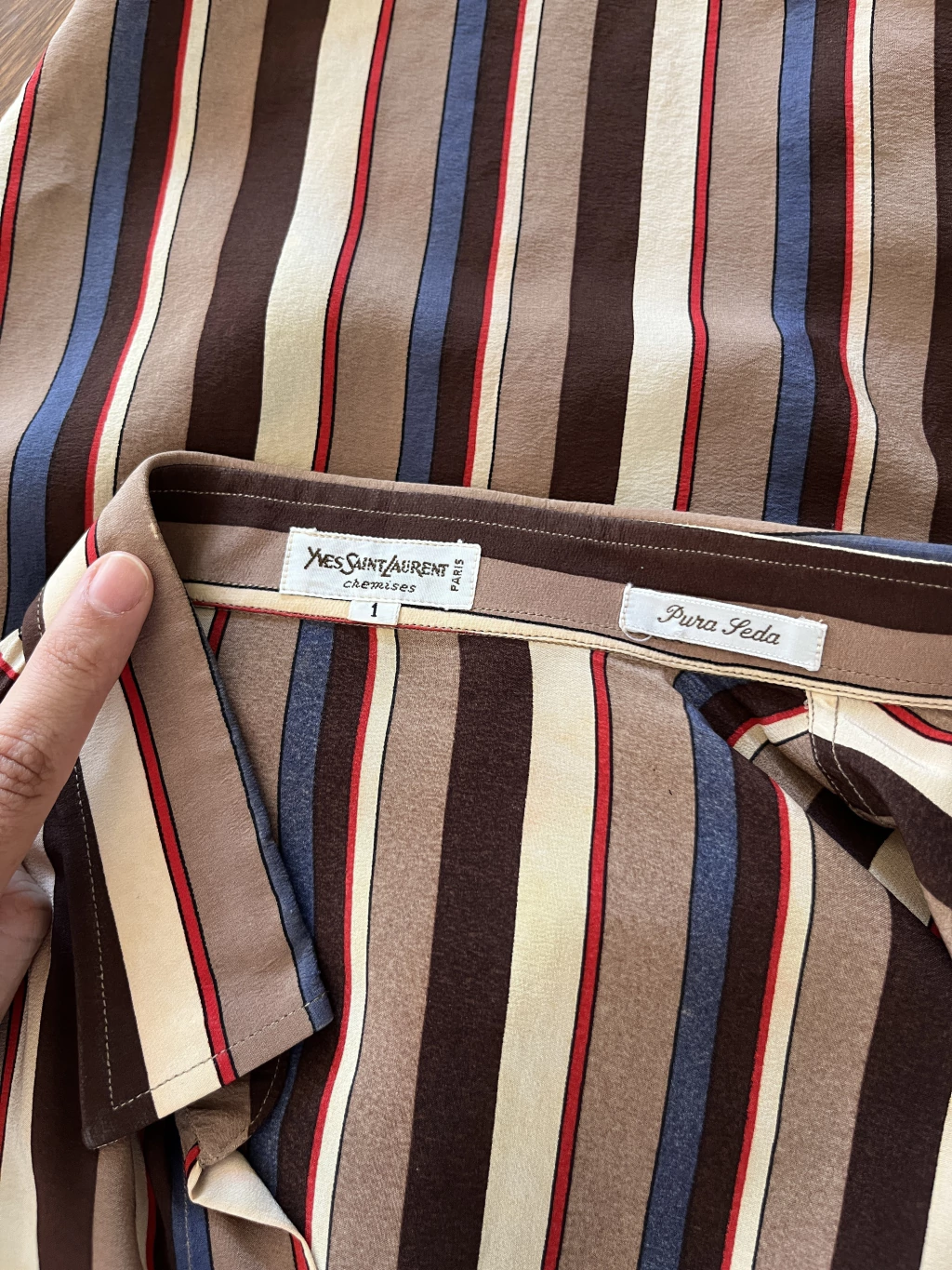 Camisa Yves Saint Laurent vintage em sera pura listrada. Tamanho 1 na etiqueta, veste aproximadamente P, confira as medidas. Possui pequenos sinais do tempo, conforme as fotos.